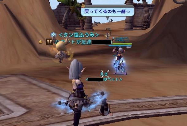 砂漠の移動速度上昇バフが、戦闘ゾーンに入っても消えないバグが二人に。