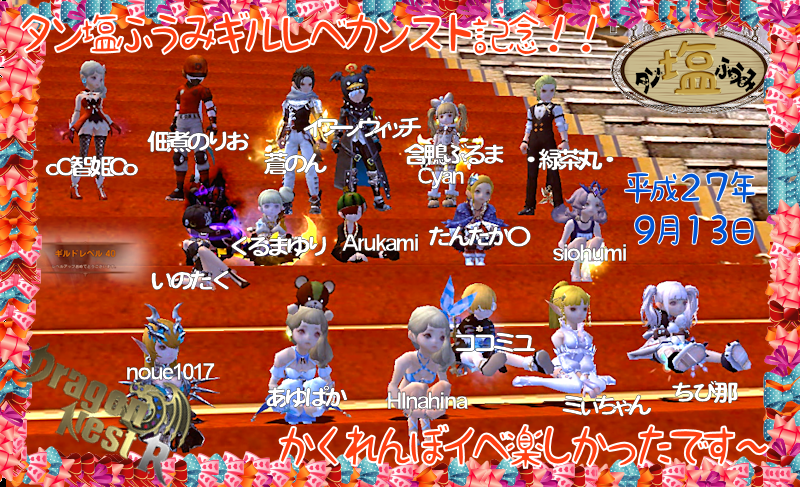 オンラインアクションゲーム「ドラゴンネストR」で活動するギルド「タン塩ふうみ」での様子をまとめたブログです。